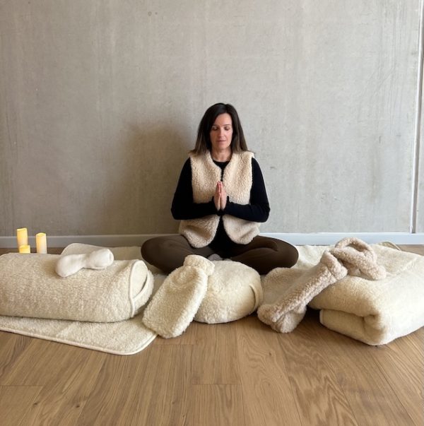 Le Pack de rêve ! 100% laine, 100% fabriqué en Europe ! 1 tapis de yoga en laine, 1 zafu de méditation, 1 bolster, 1 couverture. Et en plus vous pouvez ajouter un masque pour les yeux, une bouillotte, et un sac cabas.